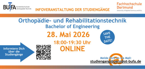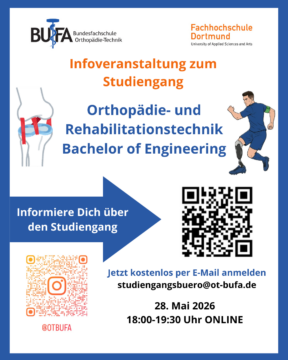 Entdecken Sie das zukunftsorientierte Studienangebot „Orthopädie- und Rehabilitationstechnik“ (Bachelor und Master of Engineering) der Bundesfachschule für Orthopädie-Technik in Kooperation mit der Fachhochschule Dortmund.